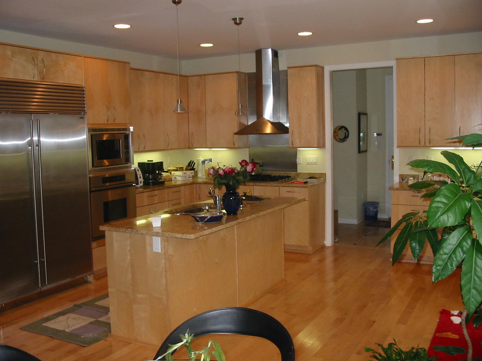 All interior millwork was custom built to order in our millshop by our team. This included the center island and all kitchen cabinets, entrance and stair railings, and rustic oak main entry door. |
